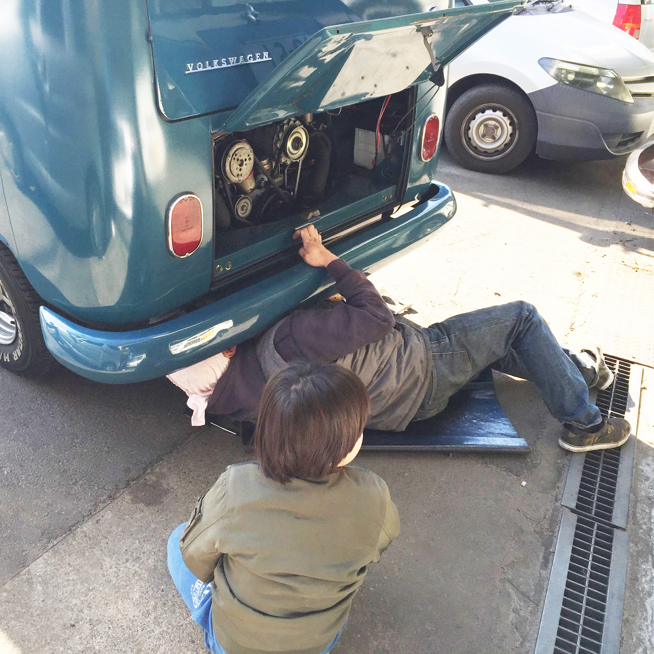 ワーゲンの場合、T-1 T-3だとリアシートの下、T-2 カルマンギアだとエンジンルームにバッテリーがあり、そこからフロントのヒューズBOXに、ヒューズBOXからまたリアのエンジンに電気は流れます。どうしても年数がたつと配線や部品に抵抗ができてきて流れが悪くなります。そこで、スターテングリレーを使ってバッテリーからスターターに直接電気を送ってあげます。